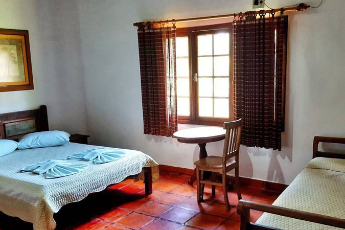 Suítes Triplas amplas e confortáveis, que podem ser configuradas com uma cama de casal + uma camas de solteiro ou três camas de solteiro.